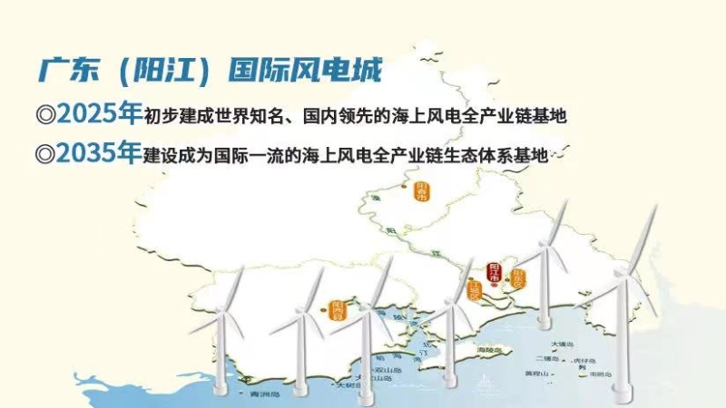 陽江海上風能資源豐富、區位條件優越、港口條件良好、風電裝備制造水平國內領先,在全省率先建設海上風電全產業鏈基地,已開工建設海上風電650萬千瓦,建成投產350萬千瓦,省管海域資源儲備超過1000萬千瓦,開工建設容量和建成投產容量均位居全省第一。